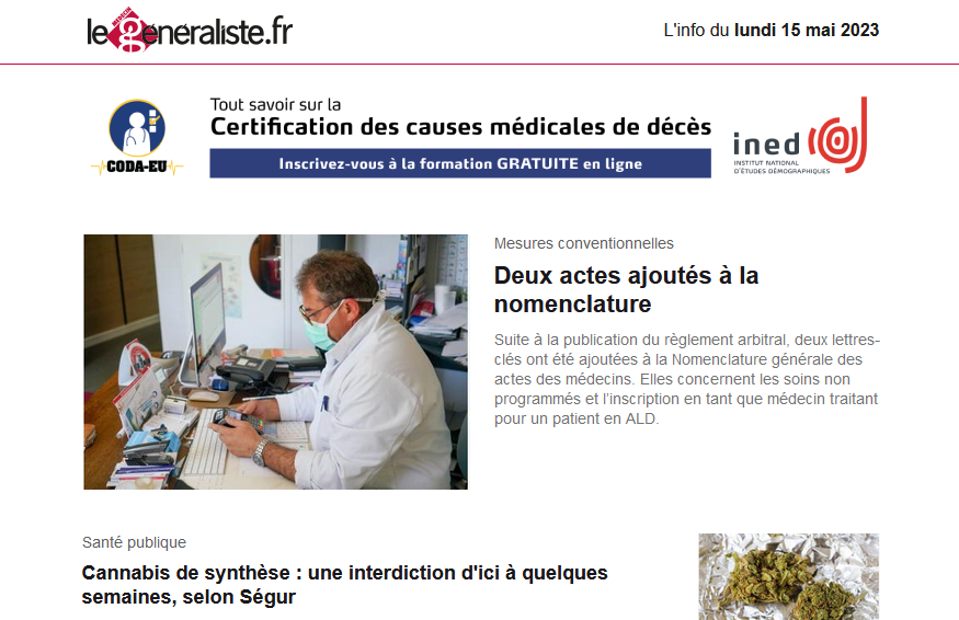 The project team launched an advertising campaign via Le Généraliste, a medical journal sent to 26,000 physician subscribers. This campaign aims to promote the online training on the certification of causes of death.